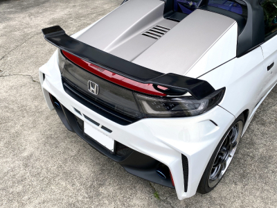 | 適合車種 | ・S660 JW5 DBA/3BA 6MT/CVT で 無限リアウイング(84112-XNA -K0S0)装着車両 ※ステー(足)は無限のパーツを使用しますので付属しません |